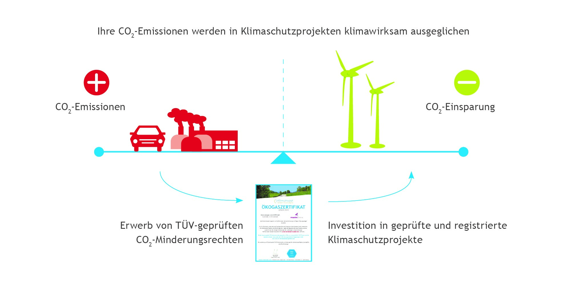 Durch Erdgas mit Klimabeitrag kompensieren wir alle CO2-Emissionen aus Ihrem Erdgasverbrauch.